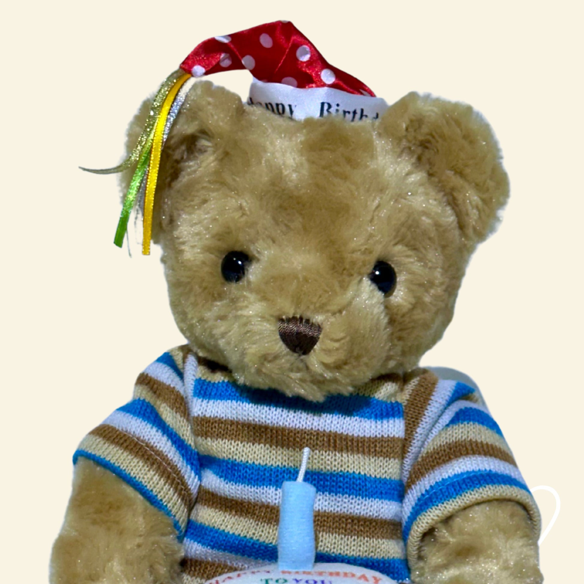 Here’s Benny, the ultimate birthday bear who’s always ready to celebrate in style! With his cheerful party hat perched proudly and a cake in tow, Benny makes every day feel like a special occasion. He’s the life of the party, singing, clapping, and making sure everyone gets a slice of fun (and maybe a little frosting on their nose). Benny’s all about joy, laughter, and reminding you that it doesn’t have to be your birthday to celebrate the good stuff. Fun fact: Benny swears he can blow out candles in one puff, no matter how many are on the cake!